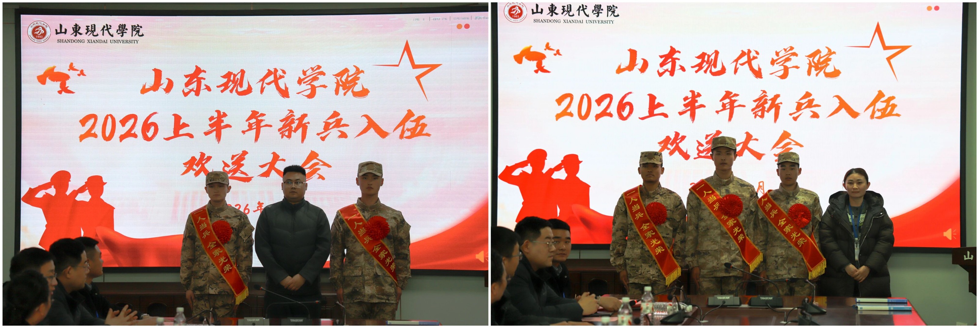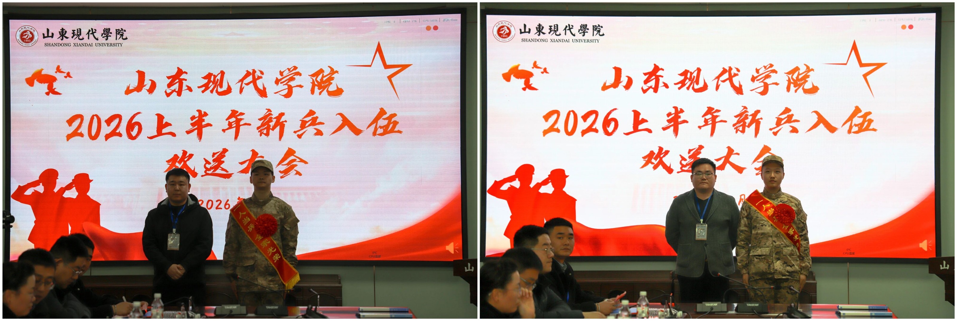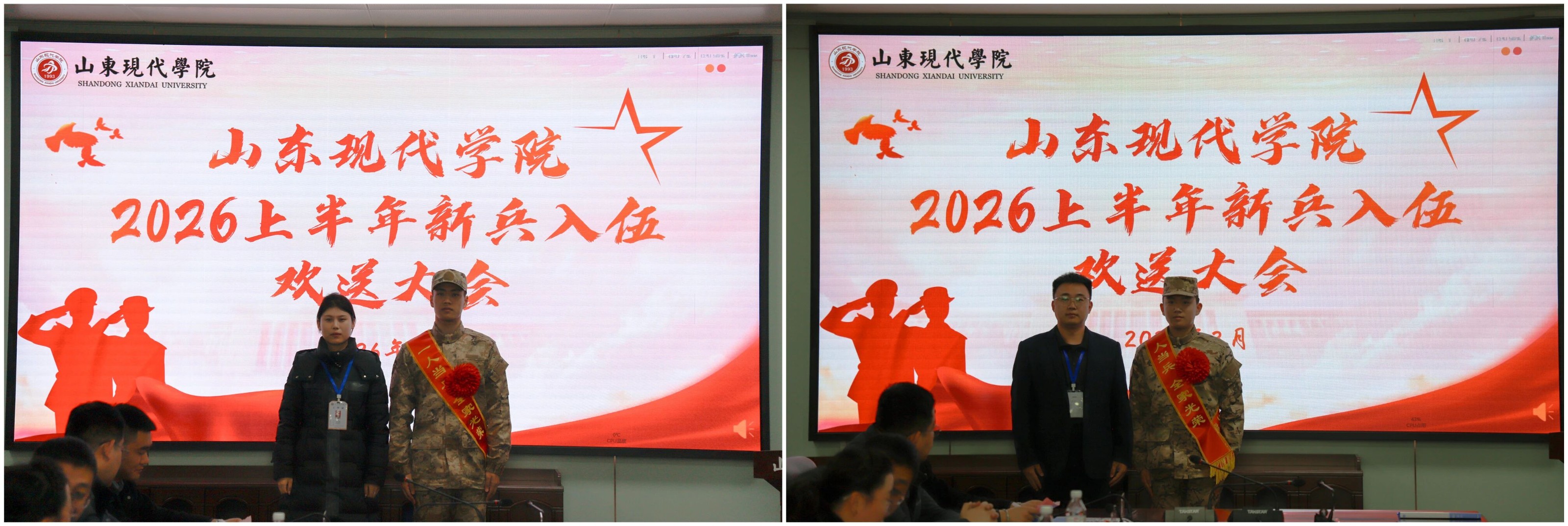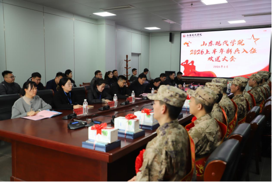 青春披戎装,热血赴军营。近期,我校在图书馆315室举办2026上半年新兵入伍欢送大会。常务副校长姜同松,学生处(征兵工作站)、各二级学院负责人与辅导员老师、家长代表齐聚一堂,共同为13名即将踏上军旅征程的现代学子送行。