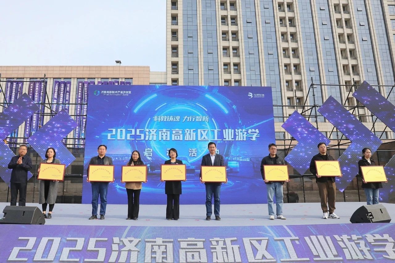 3月31日上午,济南高新区工业游学项目启动仪式在生物科技企业华熙生物隆重举行。山东现代学院董事长、校长刘春静,常务副校长姜同松受邀出席活动,我校学生代表参与游学实践。