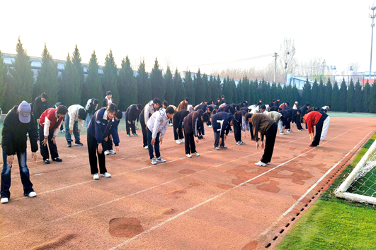 操场上,大家队列整齐、精神饱满,伴随着整齐的口令舒展身姿。跑步、热身、基础体能训练有序进行,动作规范有力,步伐铿锵整齐。