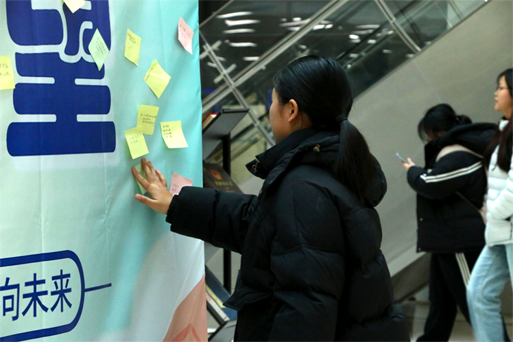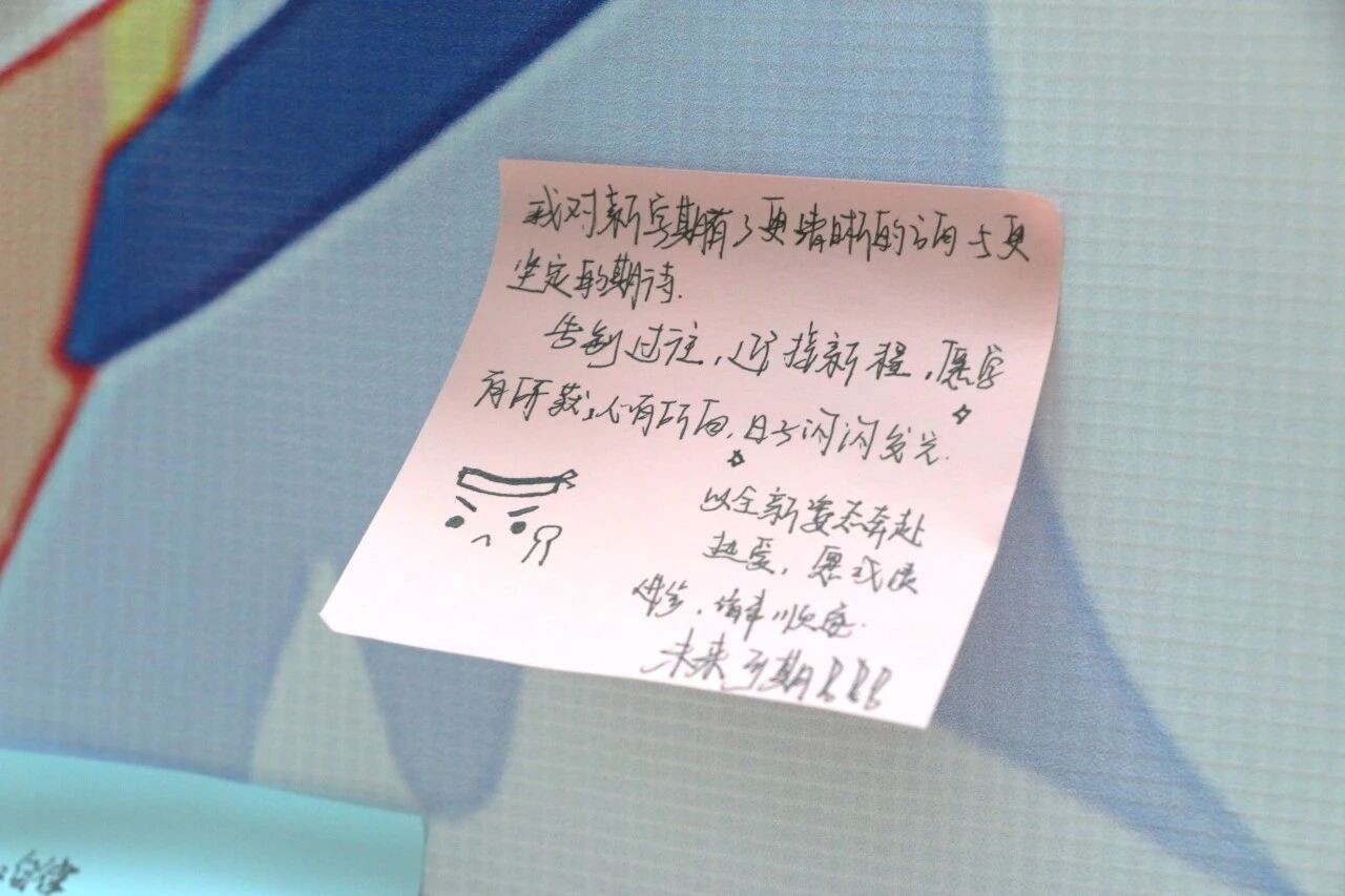 分享会结束后,同学们纷纷拿起便签,认真写下自己新学期的学习计划、成长目标与美好心愿,郑重地粘贴在展板上。一句句朴实真诚的话语,一个个清晰坚定的目标,汇聚成充满正能量的青春图景,展现出我校学子昂扬向上的精神风貌。