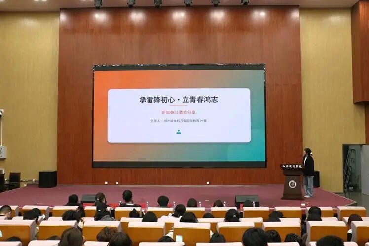 同学们依次上台分享了自己制定的新学期计划、今后的奋斗目标等等。他们目光坚定、语气恳切,将对学业的追求、对理想的憧憬娓娓道来,字句间满是新时代青年对未来的责任与担当,让在场师生感受到了他们的蓬勃力量和坚定决心。